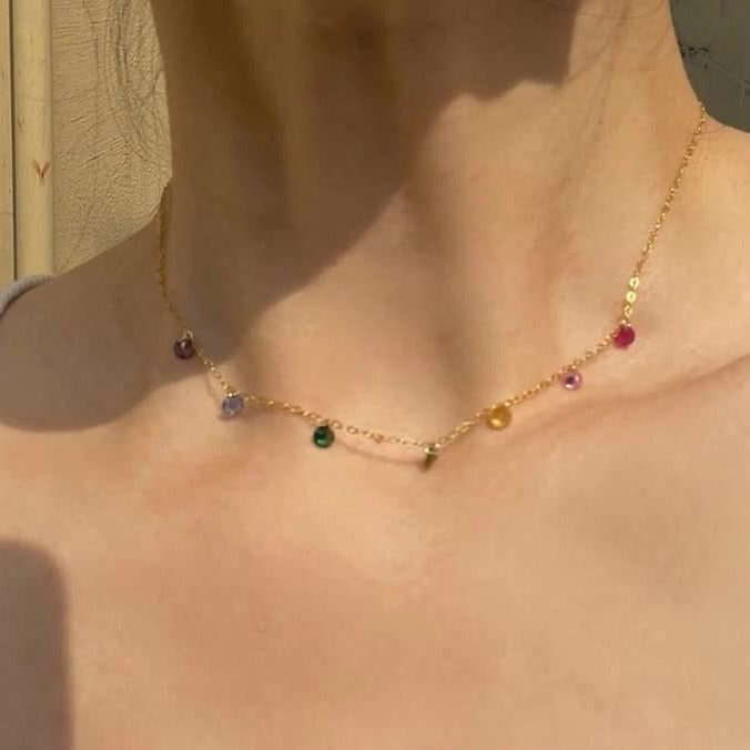 This 14K gold-filled necklace features a refined and luxurious design, adorned with dazzling rainbow zircon stones that radiate vibrant colors and brilliance. Its classic and versatile style makes it perfect for both everyday wear and layering. Made with durable, tarnish-resistant 14K gold-filled material, it offers lasting shine and comfortable wear, ensuring a timeless elegance around your neckline.