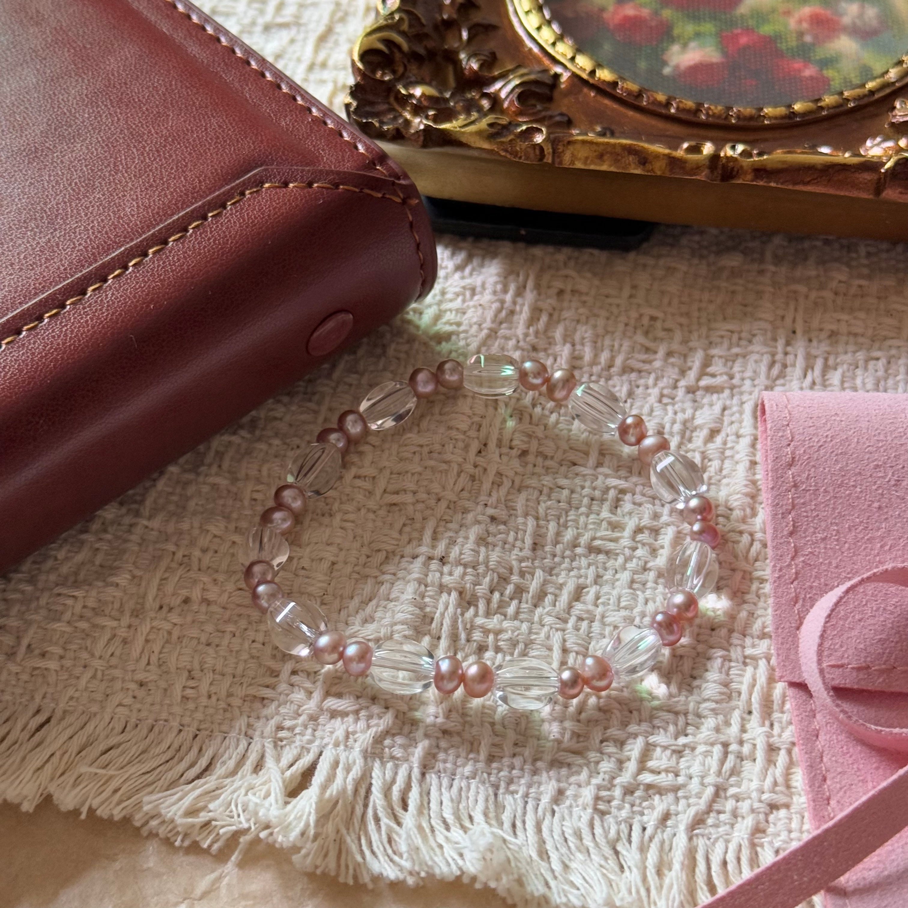 This bracelet features natural Brazilian clear quartz paired with soft pink-lilac freshwater pearls, creating a luminous and refined look. The clarity of quartz beautifully complements the gentle luster of pearls, resulting in a balanced and elegant design. Minimal yet expressive, it’s perfect for everyday wear or as a thoughtful gift.