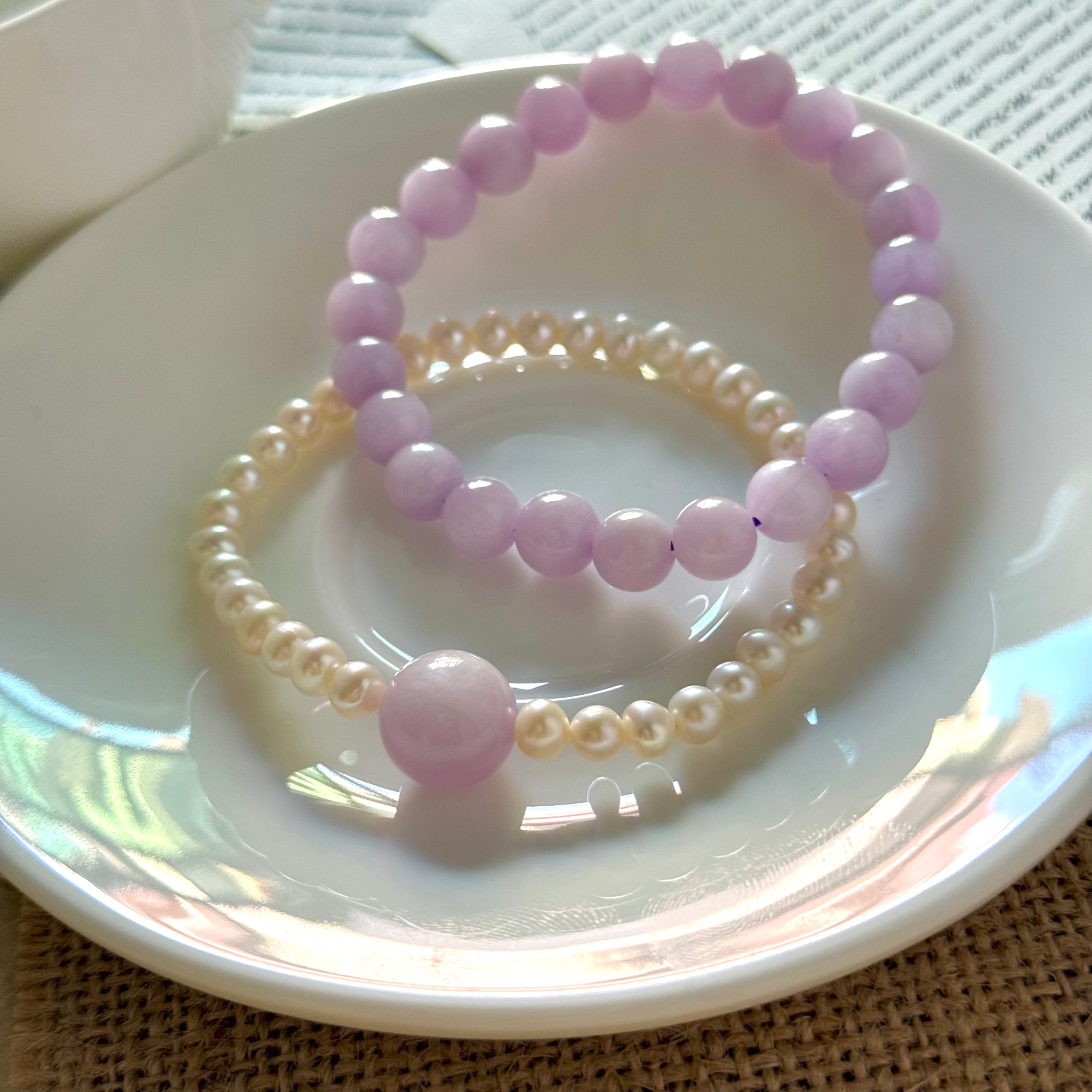 This bracelet pairs natural freshwater pearls with amethyst beads, creating a beautiful balance of softness and sophistication. The gentle luster of the pearls complements the vibrant purple of the amethyst, making it an elegant piece suitable for gifting or daily wear.