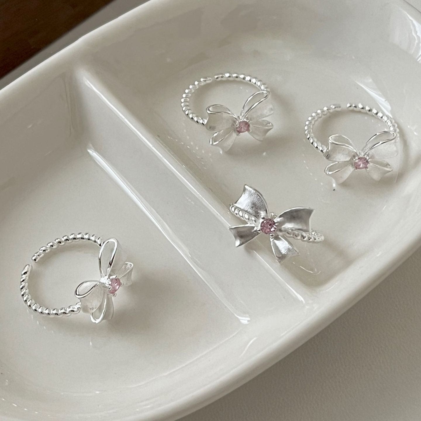 Crafted from S925 silver, this ring features a brushed finish for a soft, elegant texture. The bow design embodies sweetness and grace, adorned with a pink zircon that adds a touch of delicate charm. Perfect for both everyday wear and special occasions, this piece showcases timeless beauty and sophistication.