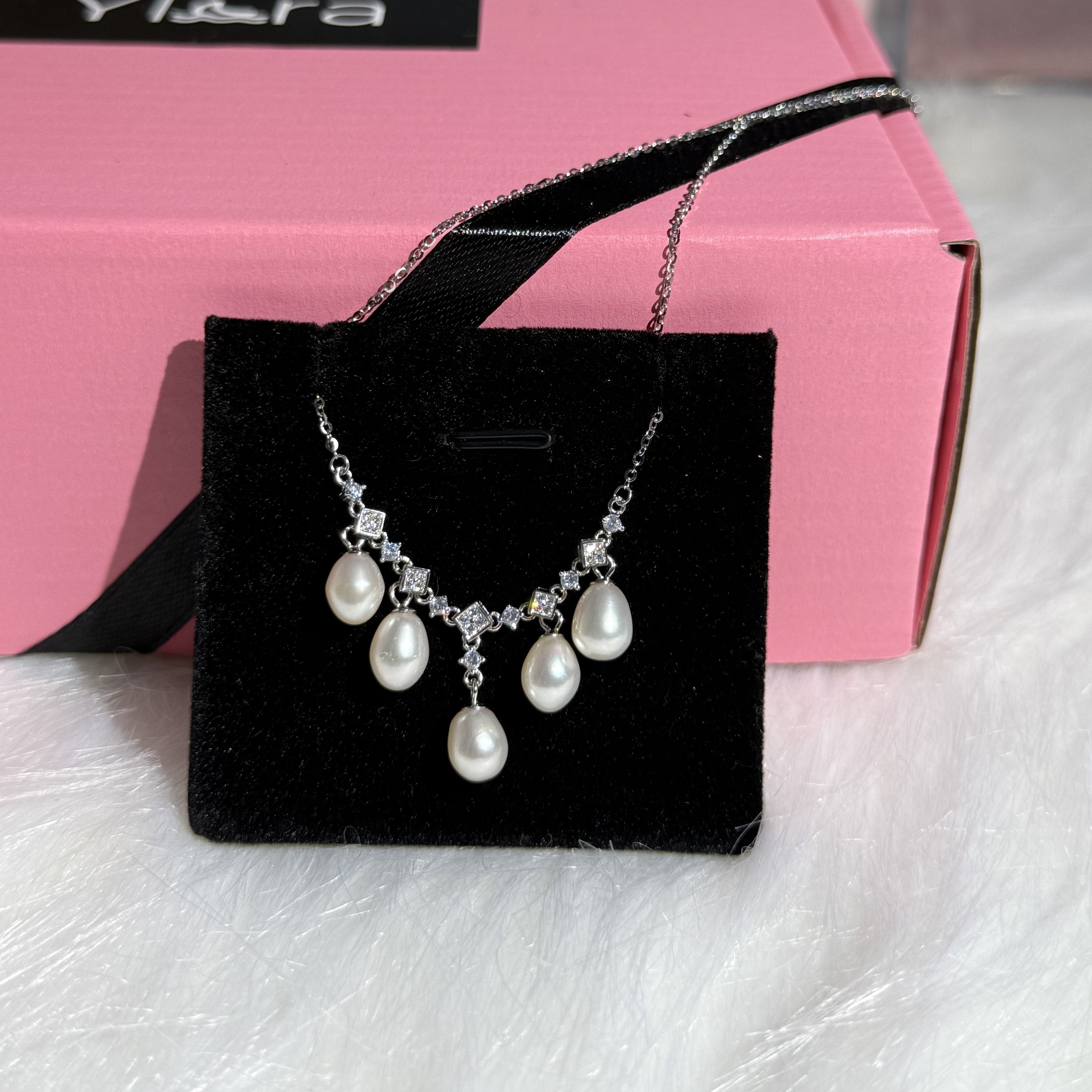 This necklace, crafted from S925 silver, features a natural freshwater pearl paired with an elegant V-shaped design and graceful tassels. Combining modern charm with timeless elegance, the luminous pearl and shimmering silver chain create a lightweight and sophisticated aesthetic. Perfect for everyday wear or formal occasions, this piece adds a touch of beauty and refinement to any outfit.