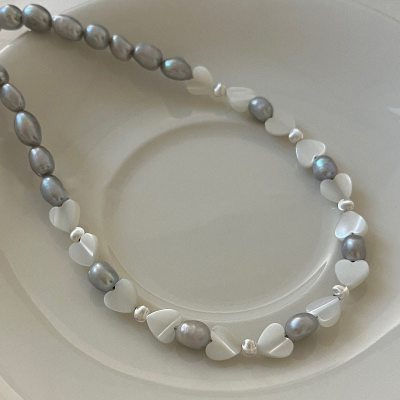 Crafted from S925 sterling silver, this necklace features a natural gray pearl paired with a heart-shaped shell design, exuding elegance and refinement. The soft luster of the gray pearl adds understated luxury, while the hollow heart shell brings a romantic touch. A versatile piece perfect for both everyday wear and special occasions.