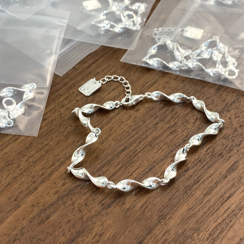 This S925 sterling silver bracelet features a refined twisted design, creating a dynamic yet elegant silhouette. The flowing curves catch the light beautifully, adding a subtle shine that enhances the bracelet’s understated sophistication. Its sleek, polished finish complements both casual and formal outfits, making it a versatile addition to any jewelry collection. Crafted with precision, the bracelet balances simplicity and style, offering a timeless piece that adds a touch of modern elegance to the wearer.