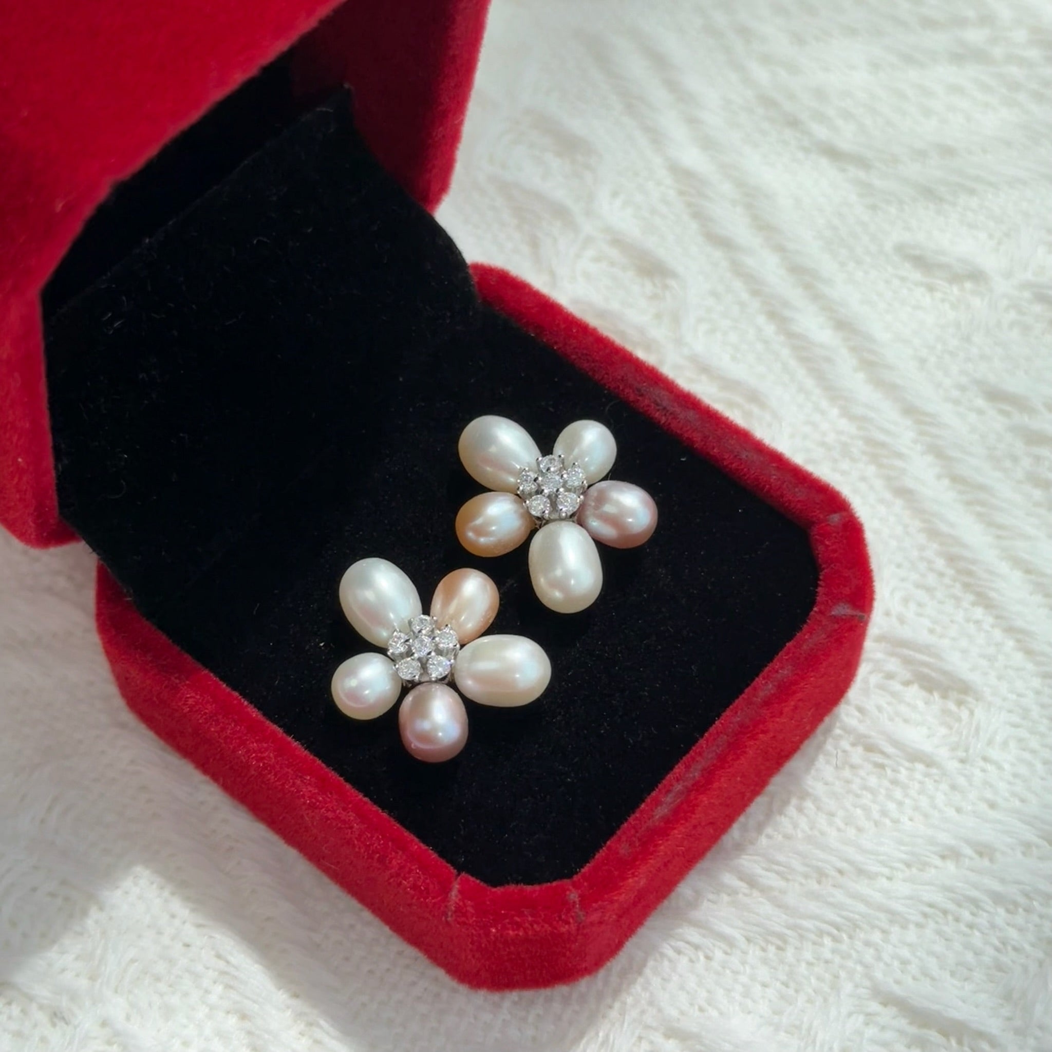 Inspired by blooming petals, these earrings feature natural pearls nestled at the heart of delicate floral designs. Crafted from S925 silver, they capture the gentle shimmer of moonlight on freshly opened blossoms. Elegant and romantic, they add a subtle yet graceful touch to any look.