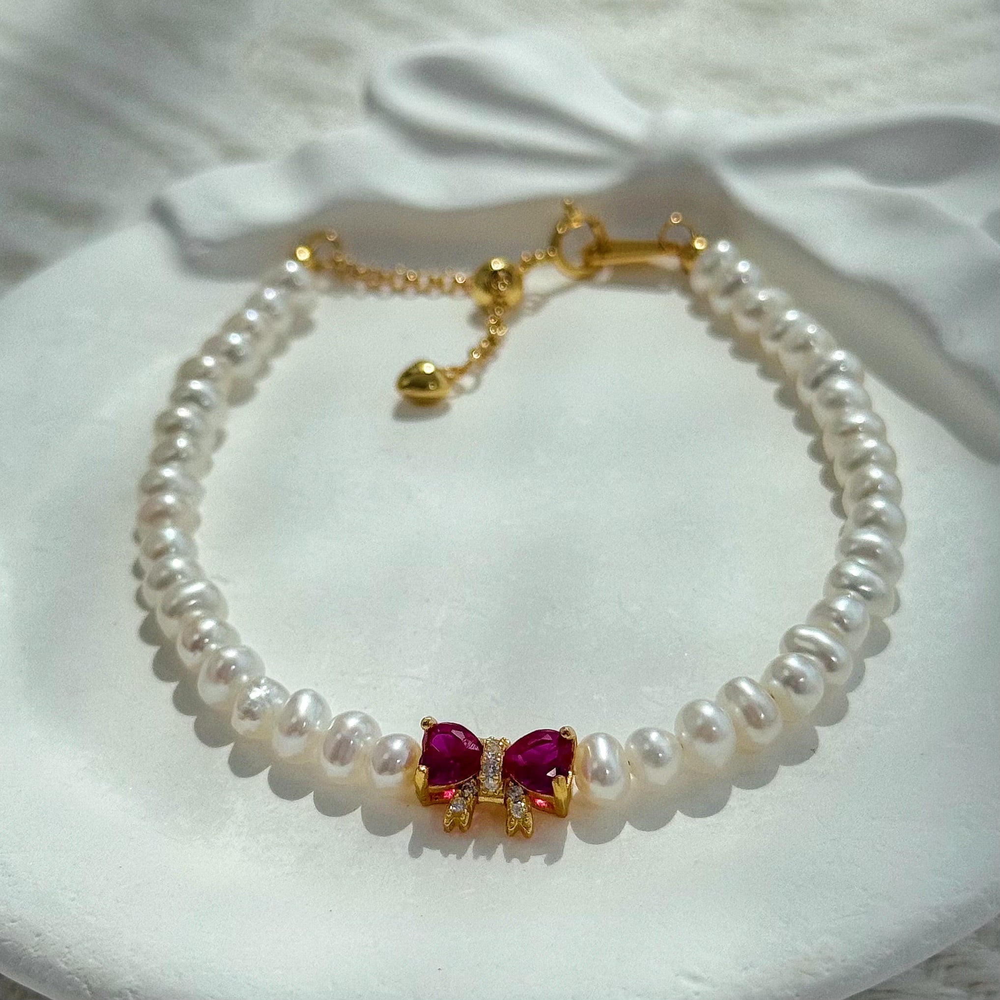 Crafted from S925 silver, this bracelet features delicate crimson crystal butterflies paired with lustrous natural pearls. The design evokes fluttering wings in a sunset glow—graceful, romantic, and full of feminine charm. A perfect accessory for daily elegance or a heartfelt gift.
