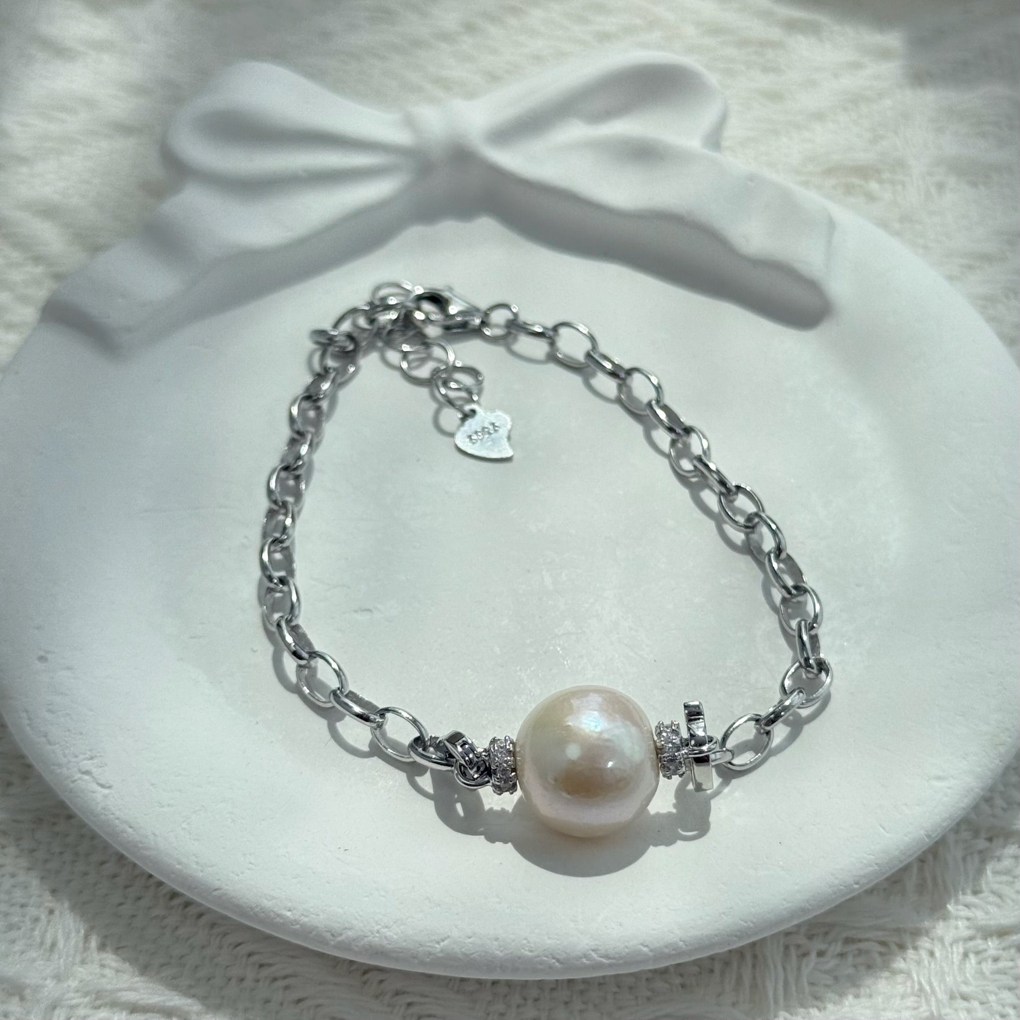 Featuring S925 silver and luminous large natural pearls, this bracelet radiates a soft, moonlit glow. The simple yet graceful design highlights timeless elegance, making it a versatile piece for both everyday wear and special occasions.