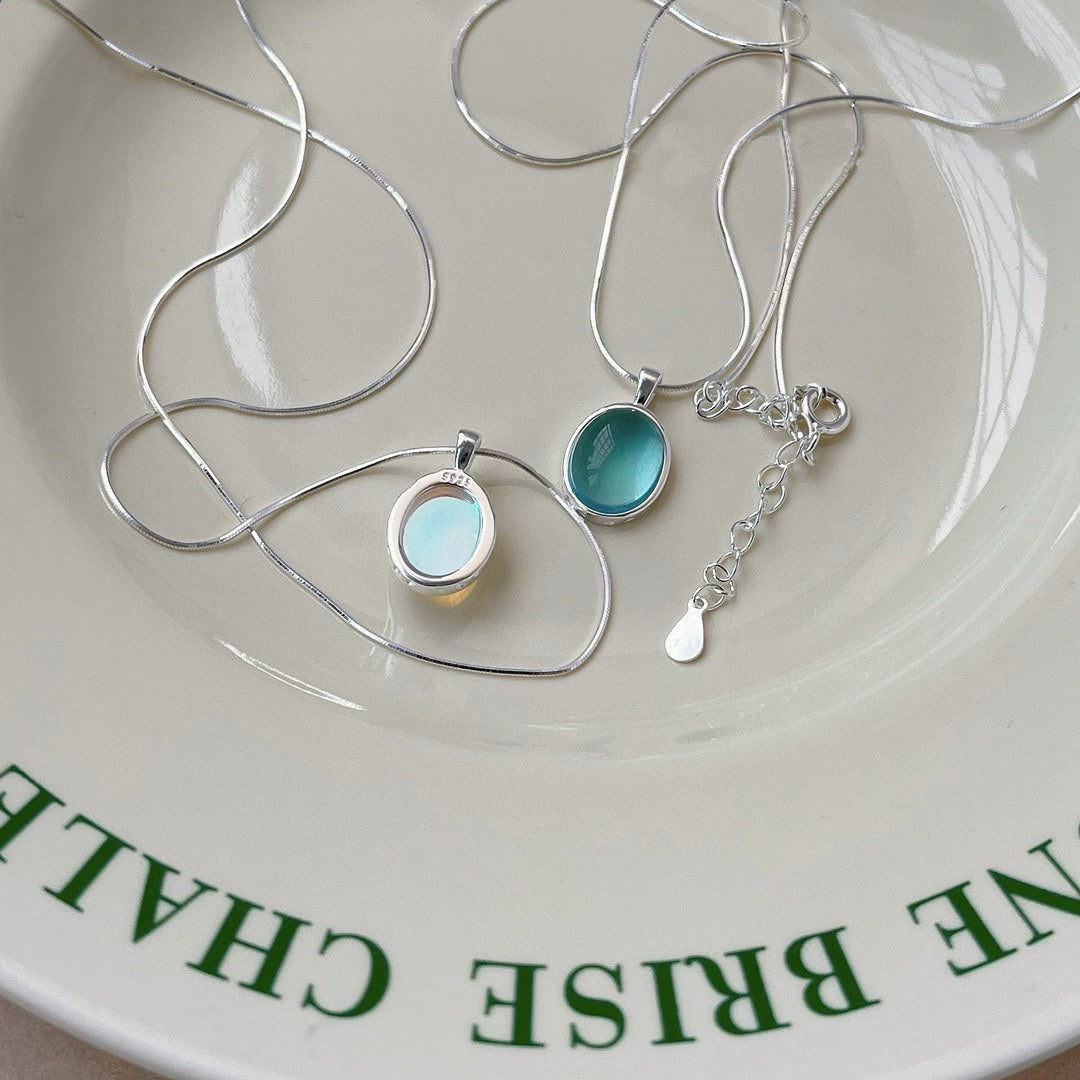 This necklace combines the clarity of aquamarine with the unique texture of a snake chain, symbolizing the mystery and power of the ocean. Like a sea serpent swimming in the depths, it radiates a gentle moonlit glow.