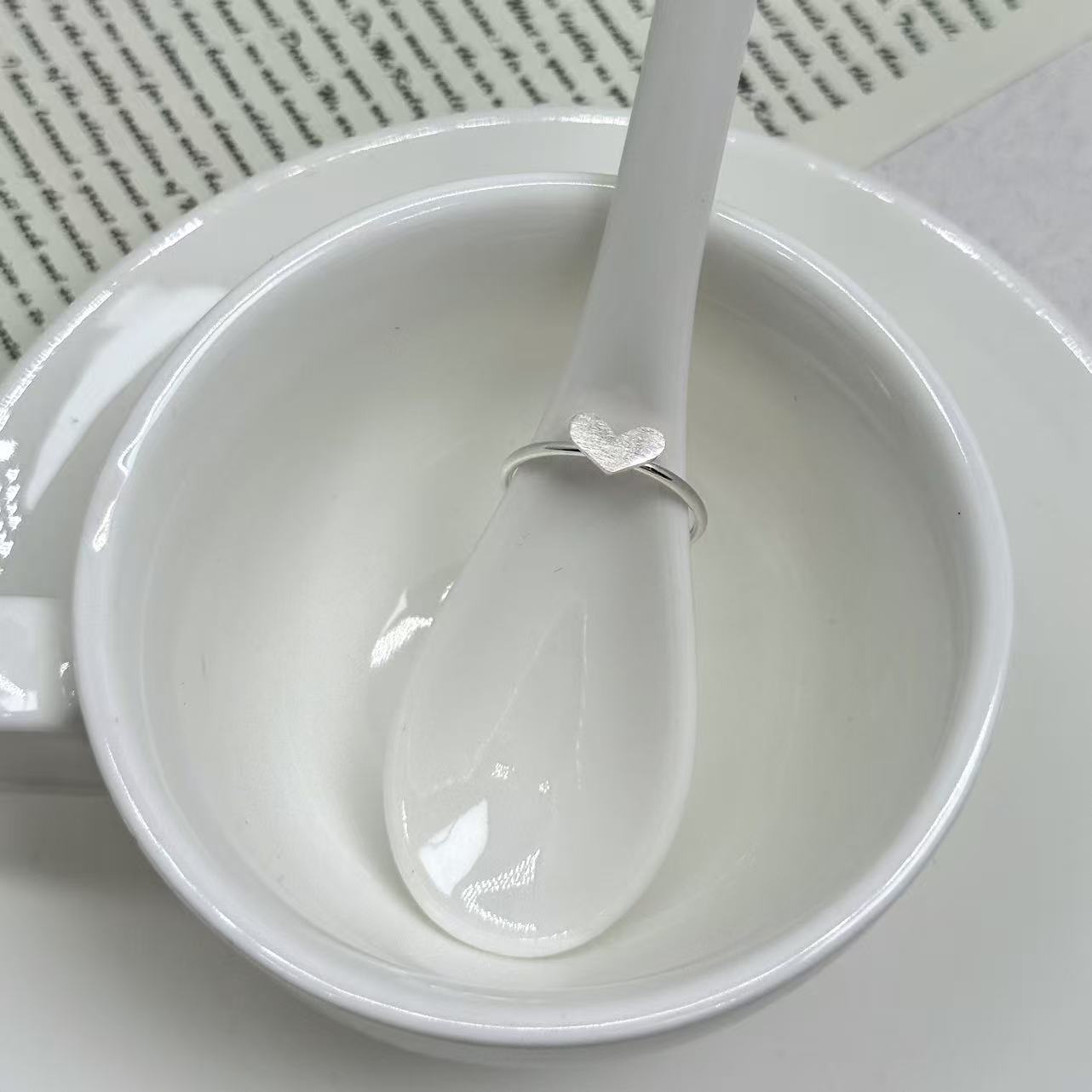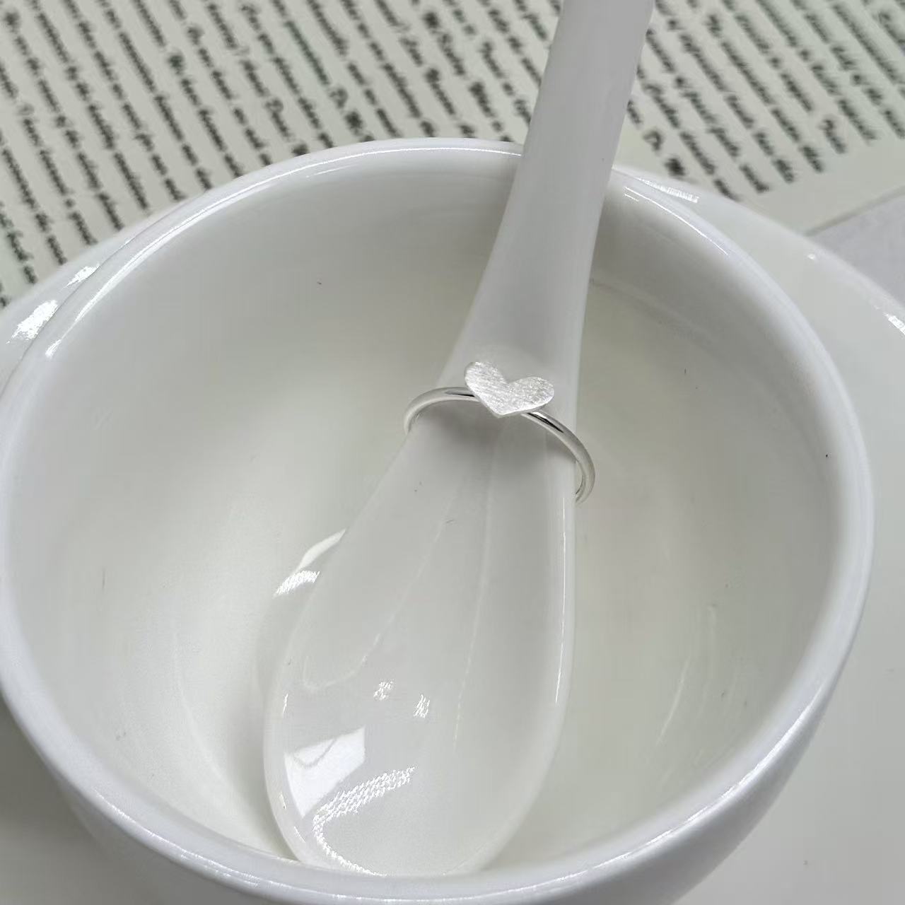 This S925 silver pinky ring features a brushed finish that gives it a soft, matte sheen. The minimalist heart design exudes quiet romance, while its smooth curves and subtle texture create a gentle glow. Perfect for stacking or wearing alone, this ring adds a touch of tenderness and refinement to any look.