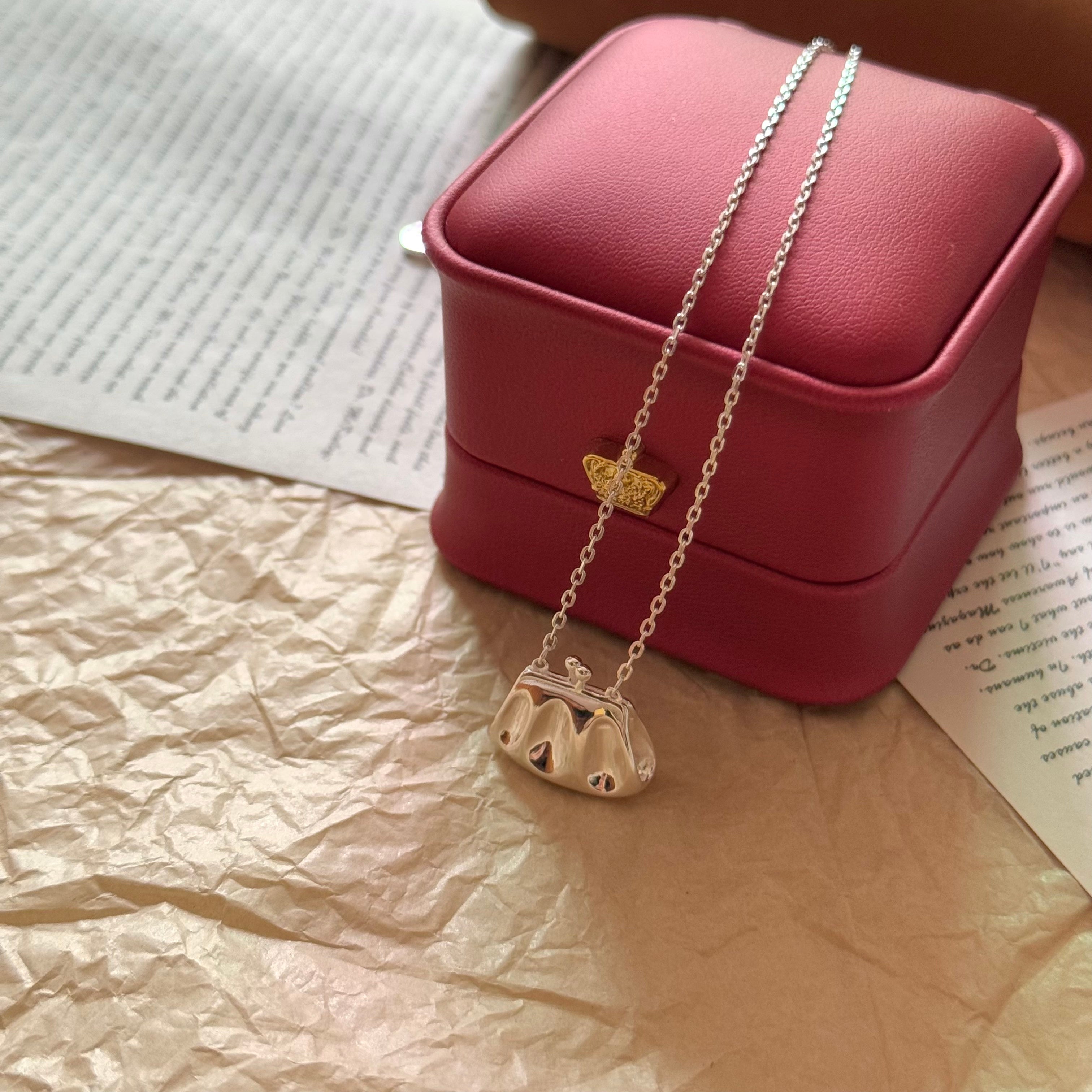 Crafted from S925 sterling silver, this necklace features a delicate hollow handbag pendant with clean lines and refined details. The lightweight openwork design gives it a playful yet elegant feel, inspired by everyday accessories with timeless charm. Easy to style and full of character, it’s a charming piece for daily wear or a thoughtful gift that adds a subtle statement to any look.