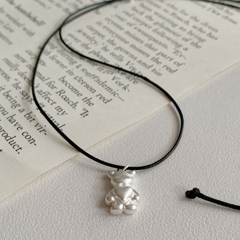 This necklace features a matte bear pendant crafted from S925 silver, paired with a textured leather cord for a blend of natural charm and contemporary style. The pendant's brushed finish adds a soft texture, while the lightweight leather cord ensures comfort and a laid-back vibe. Perfect for everyday wear or special occasions, this necklace is an ideal accessory to express individuality.