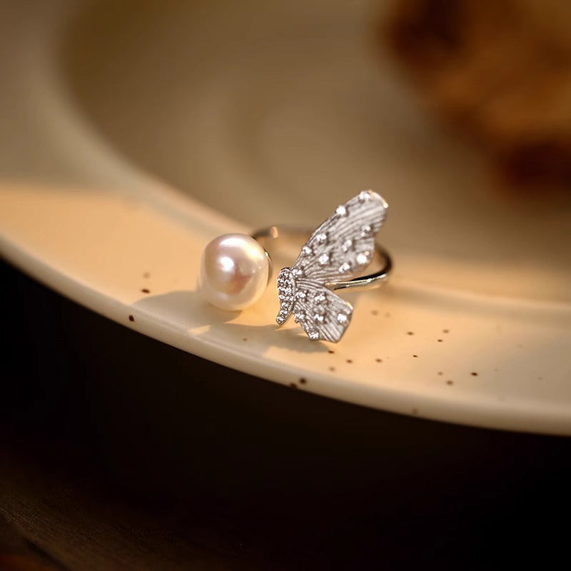 Crafted from S925 silver, this ring features a graceful butterfly design adorned with a natural freshwater pearl that radiates a soft luster. The delicate butterfly adds a whimsical charm, perfectly balanced by the pearl’s elegance. A lovely piece for those who appreciate nature-inspired and romantic styles.