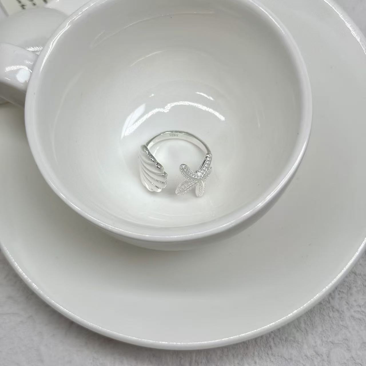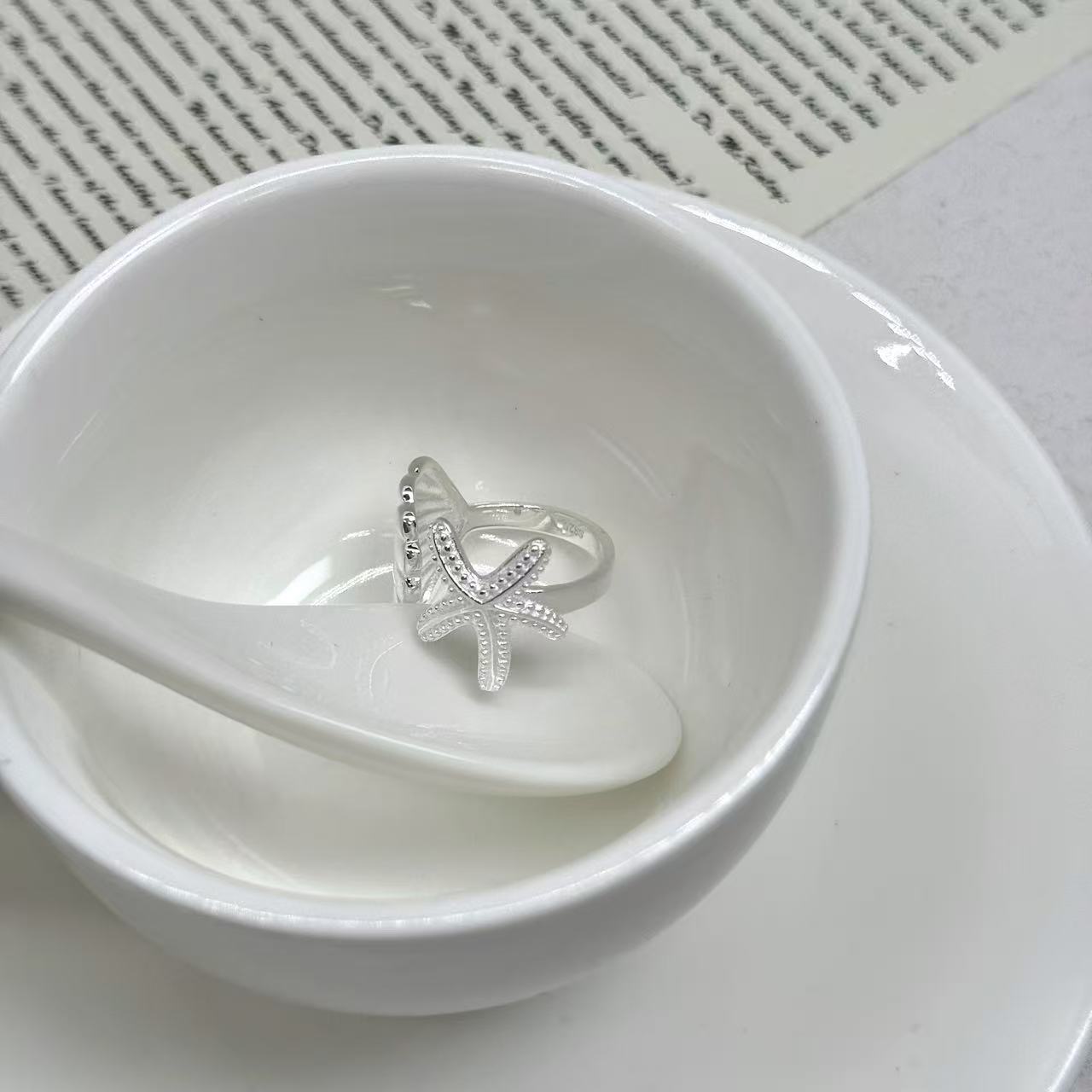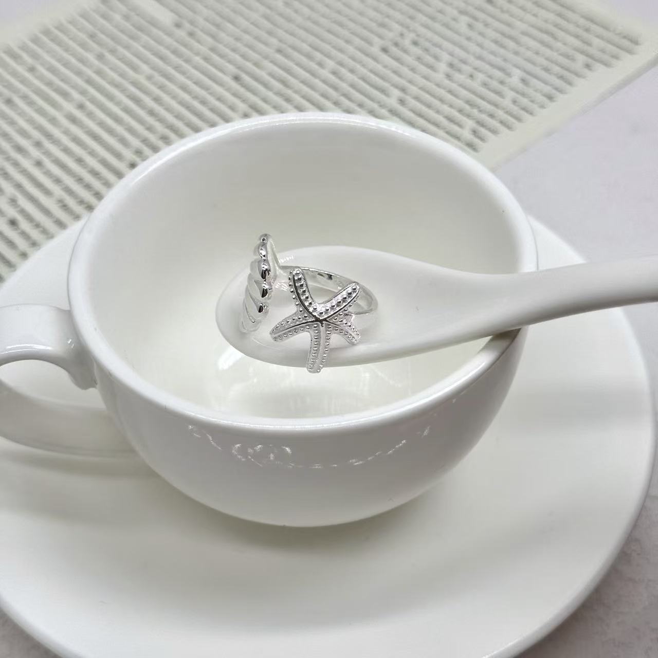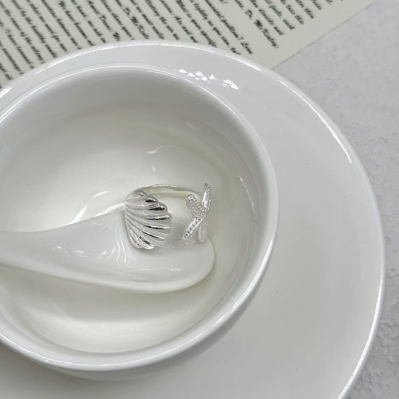 This S925 silver ring draws inspiration from the ocean, featuring an elegant starfish and shell motif. Intricately detailed with fine textures, it captures the refreshing and lively essence of the sea. The soft silver gleam shimmers like ripples under sunlight, evoking the calm beauty of coastal tides.