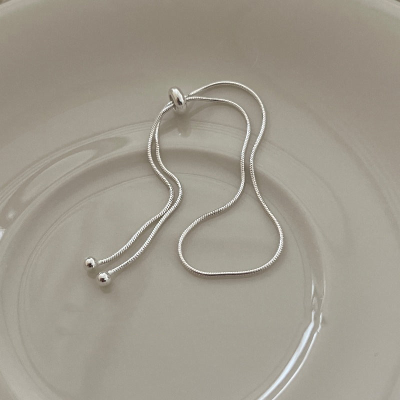 This S925 Sterling Silver Minimalist Snake Chain Slider Bracelet exudes understated elegance with its simple design and exquisite craftsmanship. Made from high-quality S925 sterling silver, the snake chain is soft and comfortable to wear. The unique slider design allows for easy length adjustment, making it suitable for various wrist sizes. Whether worn alone or layered with other accessories, this bracelet adds a touch of minimalist yet refined style to your look.