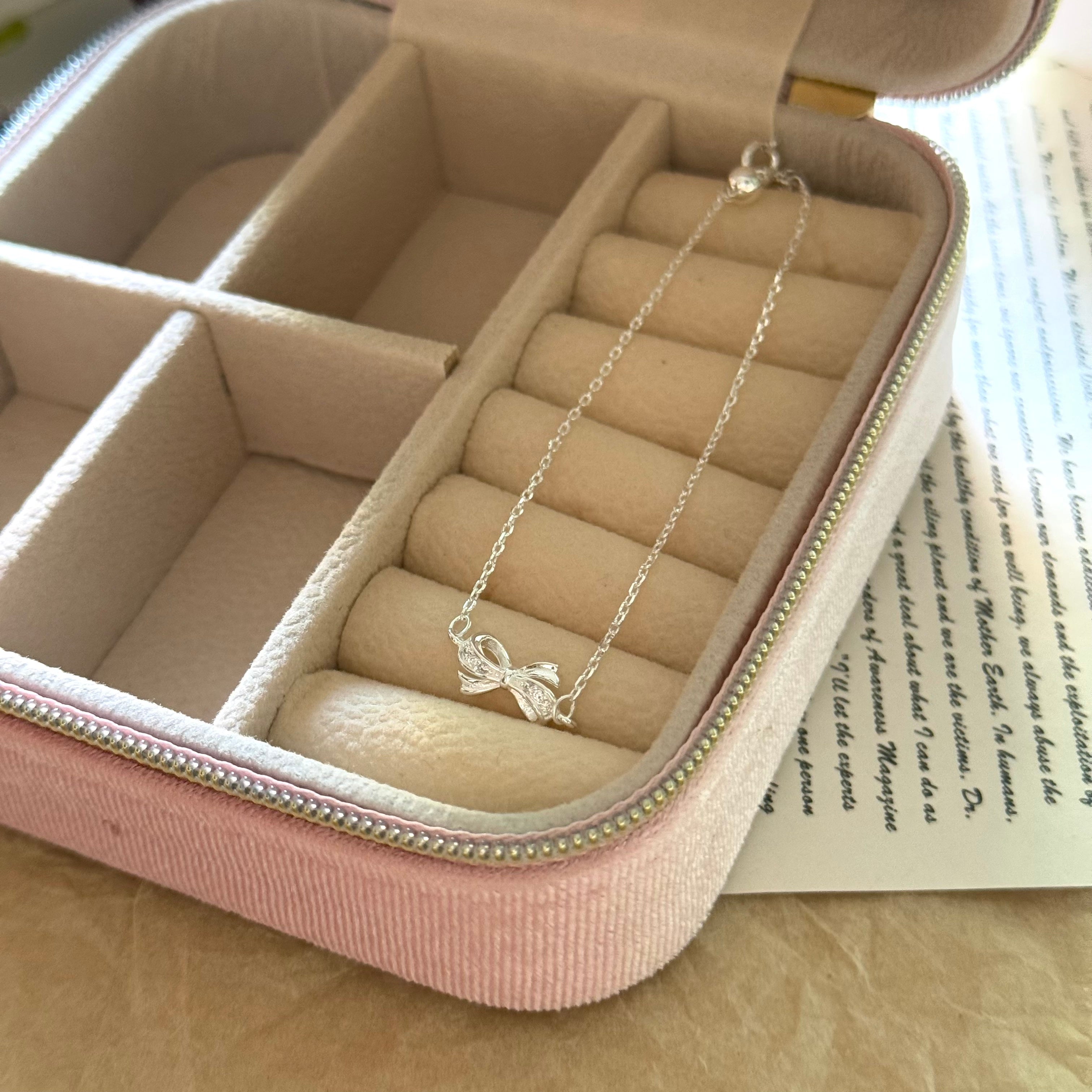 Crafted from S925 sterling silver, this bracelet features a delicate bow design accented with sparkling pavé zircon stones. The graceful silhouette adds a soft, romantic touch while remaining refined and wearable. Designed with an adjustable fit, it offers both comfort and versatility—perfect for everyday styling or as a thoughtful gift.